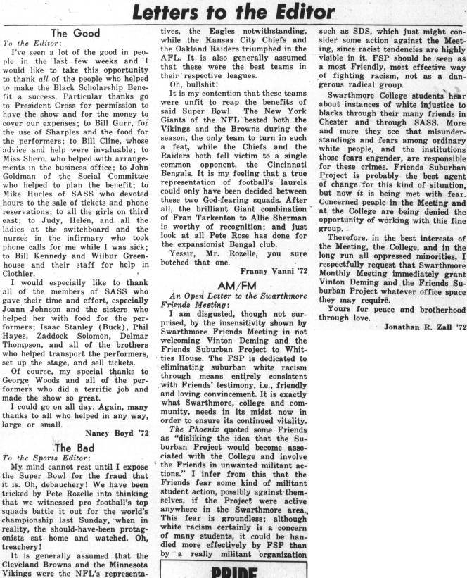 Phoenix and Nancy Boyd, “Letters to the Editor: The Good ,” Black Liberation 1969 Archive, accessed November 28, 2025, https://blacklib1969.swarthmore.edu/items/show/158.