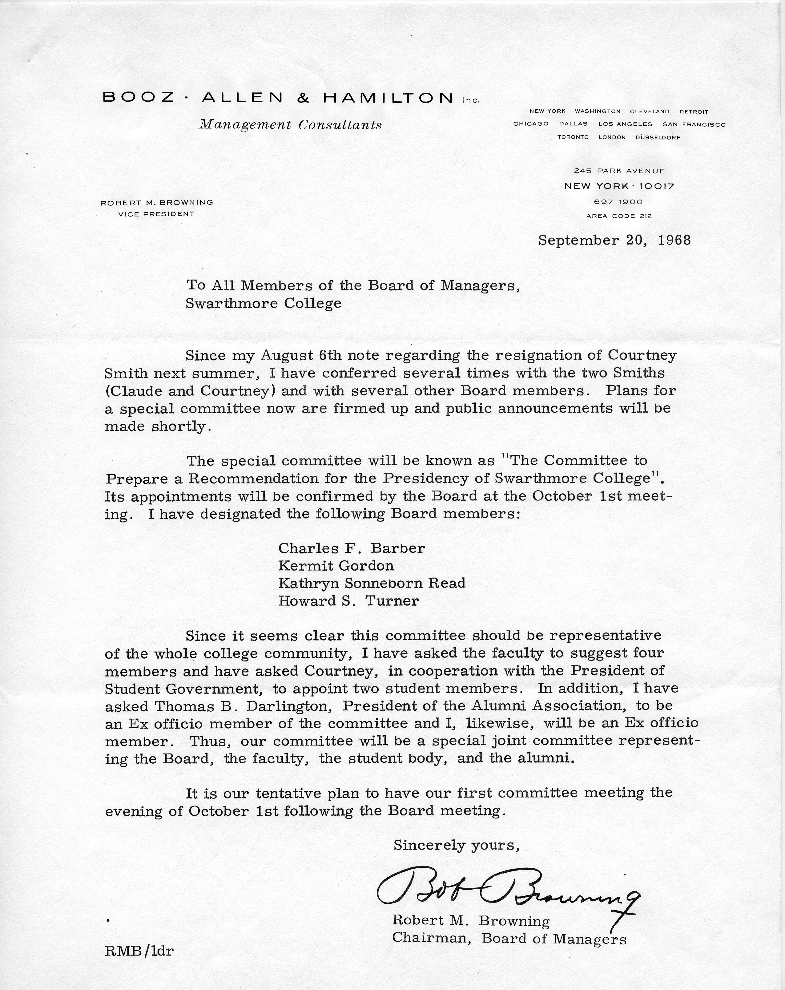Robert Browning, “[Memorandum from Robert Browning, 09/20/1969],” Black Liberation 1969 Archive, accessed November 27, 2025, https://blacklib1969.swarthmore.edu/items/show/453.