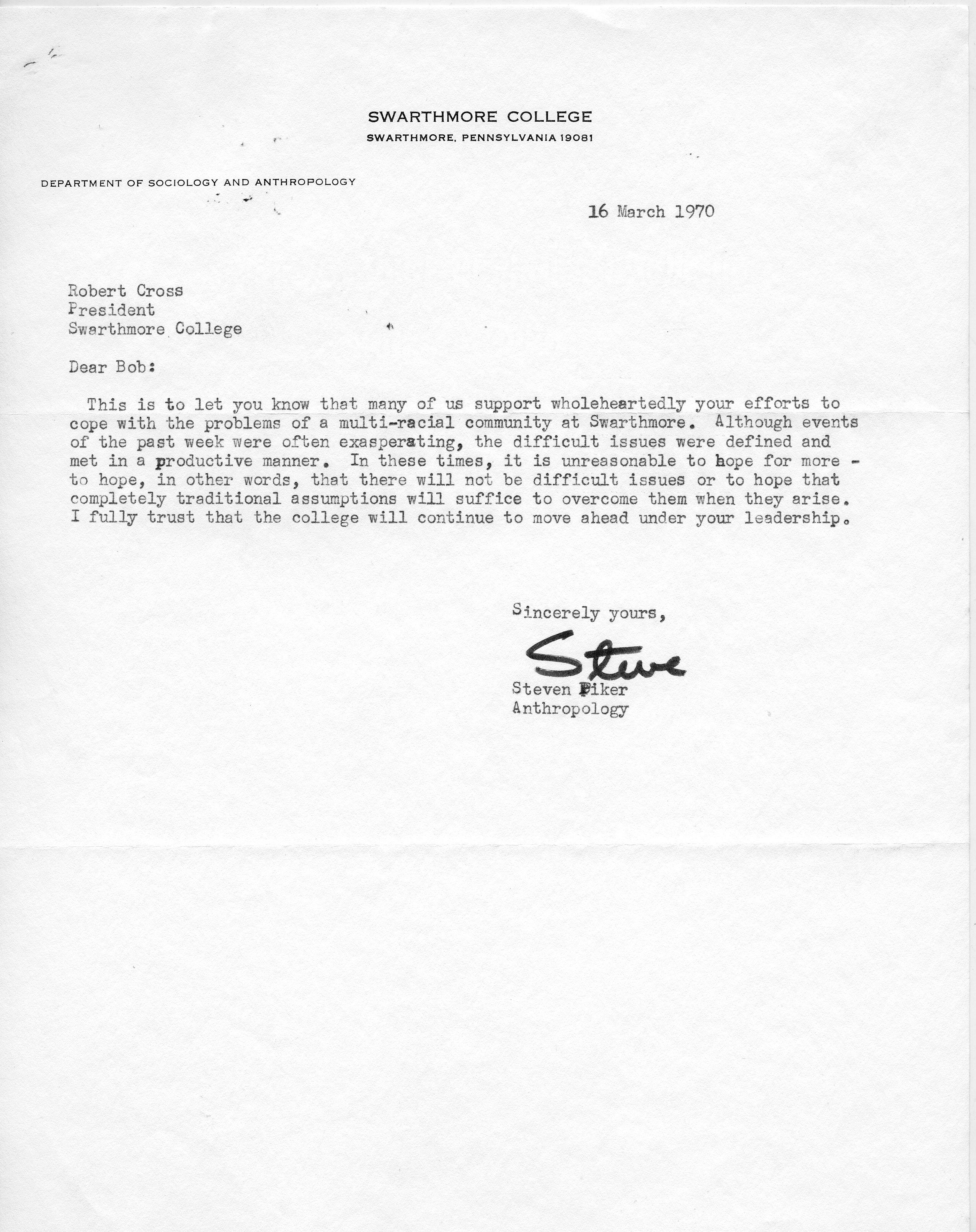 Steven Piker, “[Letter from Steven Piker to Robert Cross, 03/16/1970],” Black Liberation 1969 Archive, accessed November 27, 2025, https://blacklib1969.swarthmore.edu/items/show/521.