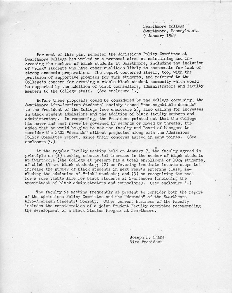 Joseph Shane, “[Open Letter from Joseph Shane, 01/09/1969],” Black Liberation 1969 Archive, accessed December 29, 2025, https://blacklib1969.swarthmore.edu/items/show/697.
