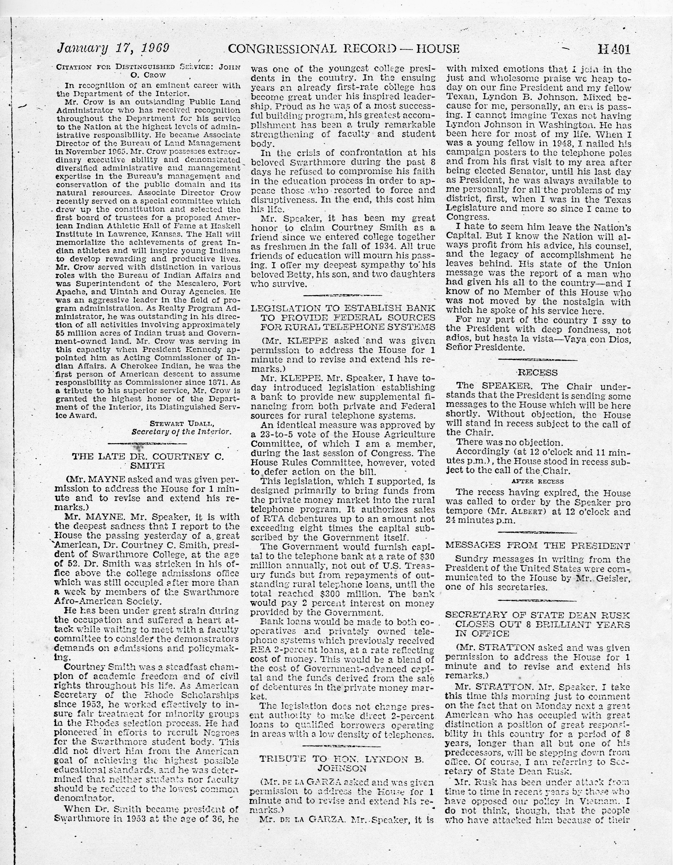 [House Congressional Record], “The Late Courtney C. Smith,” Black Liberation 1969 Archive, accessed November 27, 2025, https://blacklib1969.swarthmore.edu/items/show/776.